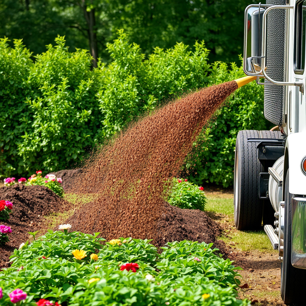 Precision delivery of organic mulch for large-scale landscaping projects, ensuring uniform coverage and clean edges.